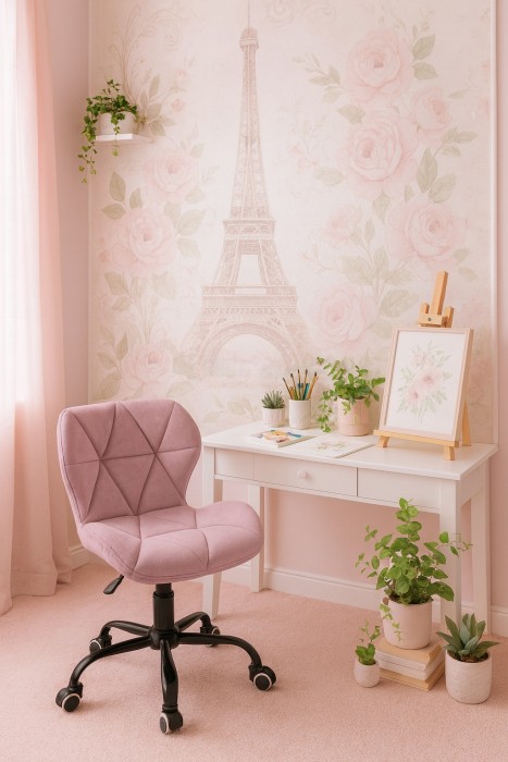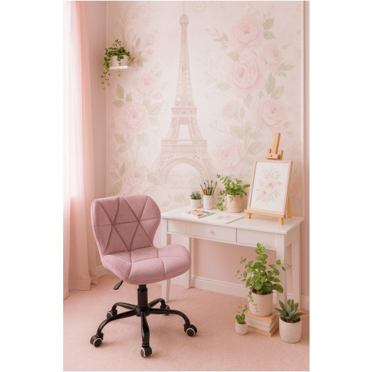 SKY74-1A Krzesło Obrotowe Welur Różowe/Czarne
