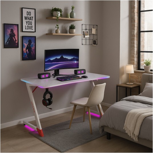 BG01-140 Biurko gamingowe białe