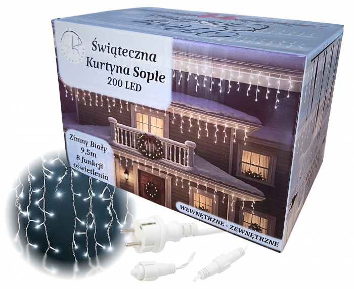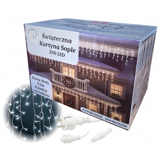 Kurtyna sople 200 LED zimny biały