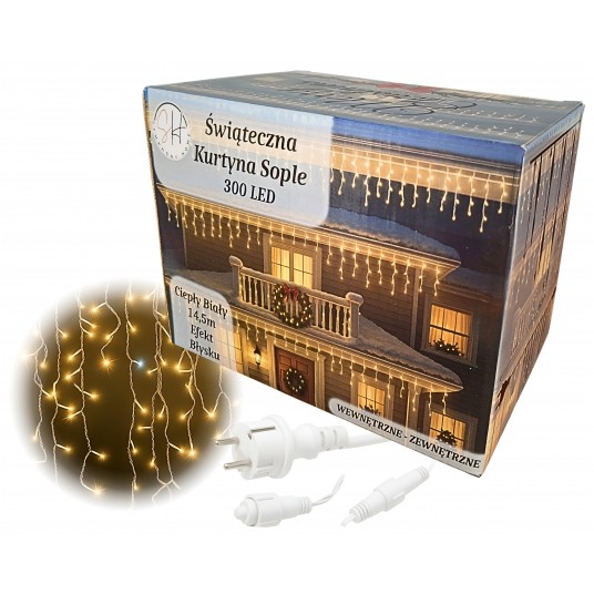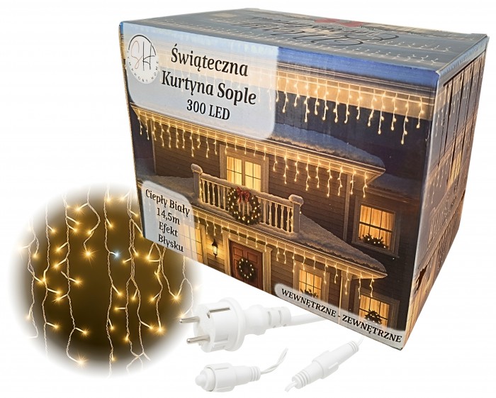 Kurtyna sople 300 LED ciepły biały