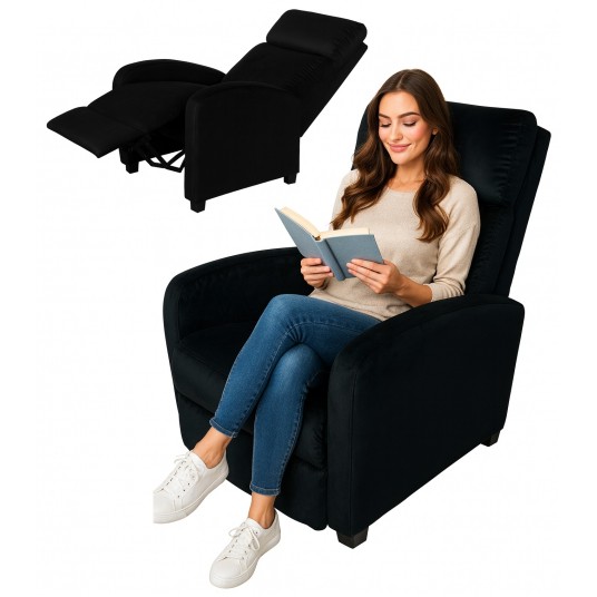 FR01 Fotel rozkładany czarny welur KJS5013